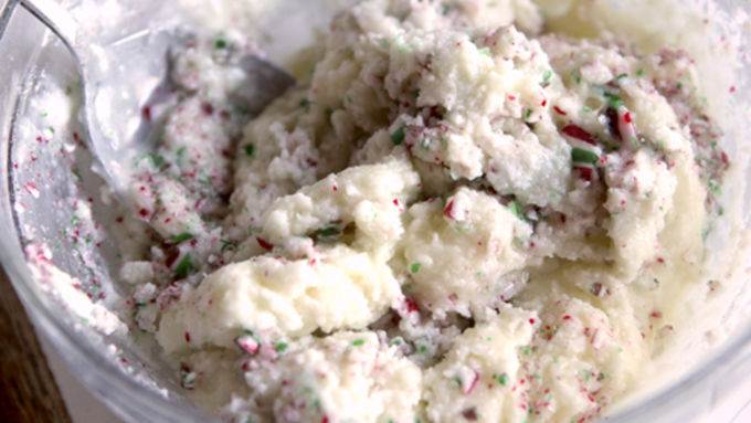 Step3Stir in the crush candy cane, just until combined, then place the mixture in the fridge to cool, for about 15-20 minutes.