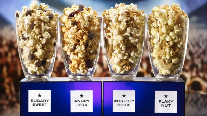 Customize these popcorn mixes with a variety of flavors that bring personality to the table. Which one is your favorite – Sugary Sweet, Angry Jerk, Worldly Spice or Flaky Nut? You be the judge!