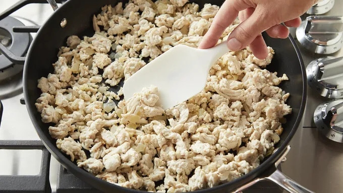 Step1In 12-inch nonstick skillet, heat oil over medium-high heat. Add turkey and onions; cook 5 to 7 minutes, stirring frequently, until no longer pink. Add garlic; cook about 1 minute or until fragrant.